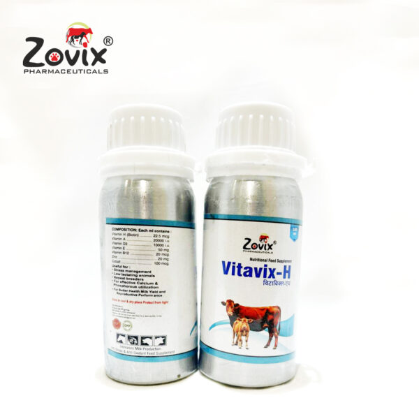 This specialized vitamin and mineral supplement from Zovix Pharma is formulated to support the health, vitality, and performance of livestock by delivering essential nutrients for overall wellness. This formulation contains key vitamins such as A, D3, E, and H (Biotin) alongside essential minerals like Zinc and Cobalt, contributing to strong immune health, enhanced coat quality, and improved metabolism.